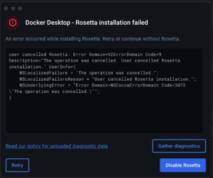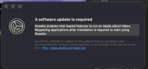 Apple SiliconでIntel向け機能が必要な場合に出ることがあります。
