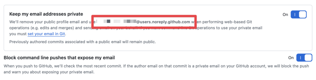 $ git config –global user.email “{xxx@users.noreply.github.com}”